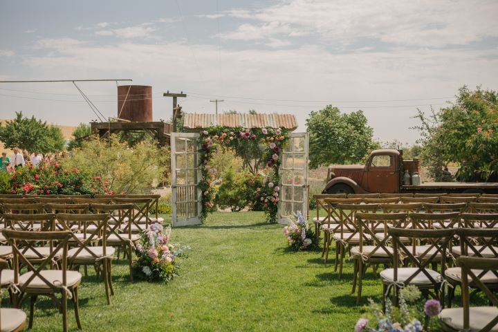 If you are looking for a rustic and romantic country chic wedding venue, Almond Springs is right for you! The space, just over two acres, is warm, inviting, charming, and full of fun! Set within a fifth generation working and operating ranch, you will enjoy ultimate privacy and 360 degrees of breathtaking views. Located 16 miles from downtown Paso Robles, you will enjoy driving through endless vineyards as you make your way out to the countryside. Best described as a country oasis, the venue is composed of a vast garden, outdoor spaces and many unique and hand crafted outbuildings (barn, prep kitchen, cabins, saloon, game room, and museum). The space is well decorated and gives off a very relaxing vibe, perfect for your breathtaking outdoor wedding.
