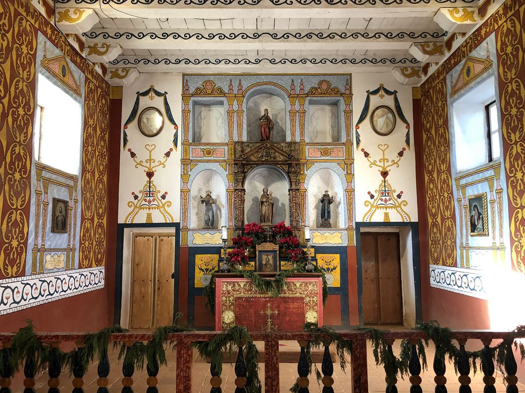 The Chapel at El Presidio de Santa Bárbara State Historic Park is furnished as it would have been in the late 18th century. The whitewashed walls are punctuated by paintings and candle sconces, and the altar is dressed with a spectacular reredos (altar piece), altar frontal, and candlesticks. Period santos fill the niches. The interior walls and altar rail are painted to represent marble or tapestry. A small balcony overhanging the interior front of the building adds charm and utility and can be used to house vendors such as musicians or photographers. The acoustics are ideal for any genre of music, overall making this the perfect place for all of life’s special celebrations and events.