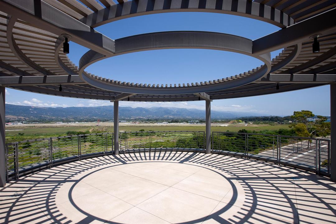 The Rose Miller Sky Terrace is located on the fourth floor of Mosher Alumni House. This circular, open-air terrace offers a dramatic, panoramic rooftop view of Goleta Beach, the Santa Ynez Mountains and The UC Santa Barbara campus.