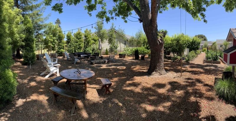 Picture this: your birthday festivities basking in the California sun as guests weave about our fruit trees, fingers brushing ripe plums and pluots. Children chasing butterflies amidst buzzing bees and the laughter of loved ones. Later, gather around the crackling fire pit, bathed in the warm glow of fairy lights, sharing stories and savoring farm-fresh appetizers plucked from our garden beds.