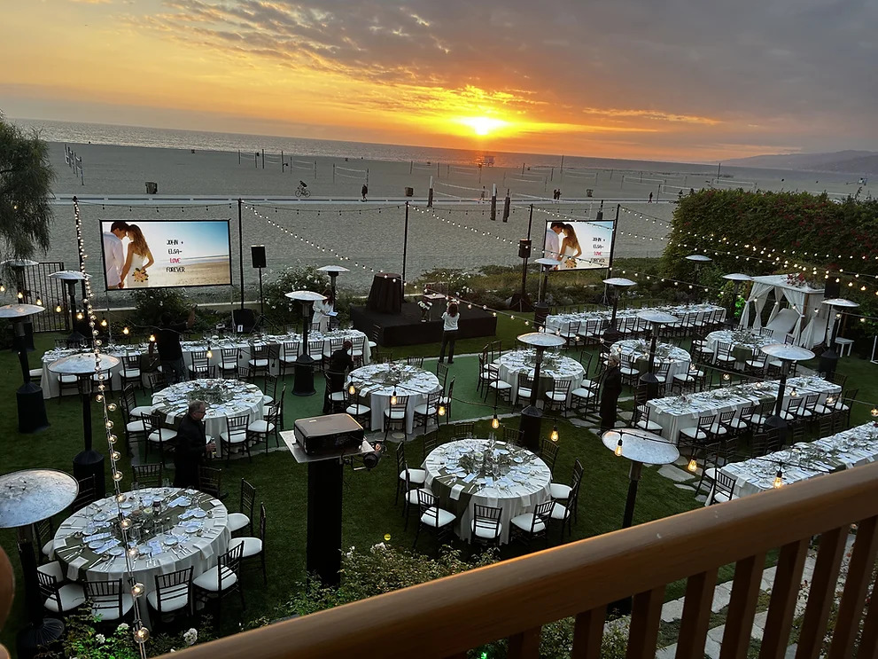 Experience the romance of a beachfront wedding with panoramic views of the Pacific Ocean at the historic Thalberg Estate. Say your vows against the backdrop of the sun setting over the water, creating an unforgettable moment for you and your guests.