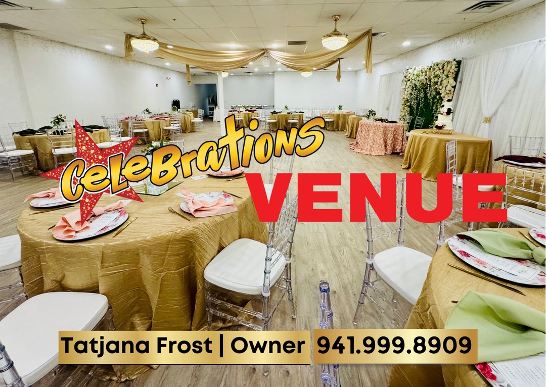 Celebrations Venue LLC is a distinguished event space renowned for its blend of elegance and versatility, catering to a wide array of gatherings including weddings, corporate functions, salsa, ballroom and swing dance lessons, parties, and special occasions. Located in a prime area, the venue boasts state-of-the-art facilities and a sophisticated ambiance, making it an ideal choice for hosting memorable events. Our venue is designed to accommodate both intimate gatherings and large-scale events, with customizable floor plans and decor options to suit your unique vision. We pride ourselves on our exceptional service, with a dedicated team of event professionals committed to ensuring every detail is meticulously planned and flawlessly executed. From personalized menu selections crafted by top chefs to cutting-edge audiovisual equipment, Celebrations Venue LLC offers a comprehensive suite of services to enhance your event experience. Whether you are planning a romantic wedding, a corporate gala, or a milestone celebration, Celebrations Venue LLC provides the perfect setting for your special day. Our mission is to turn your vision into reality, creating unforgettable memories for you and your guests.