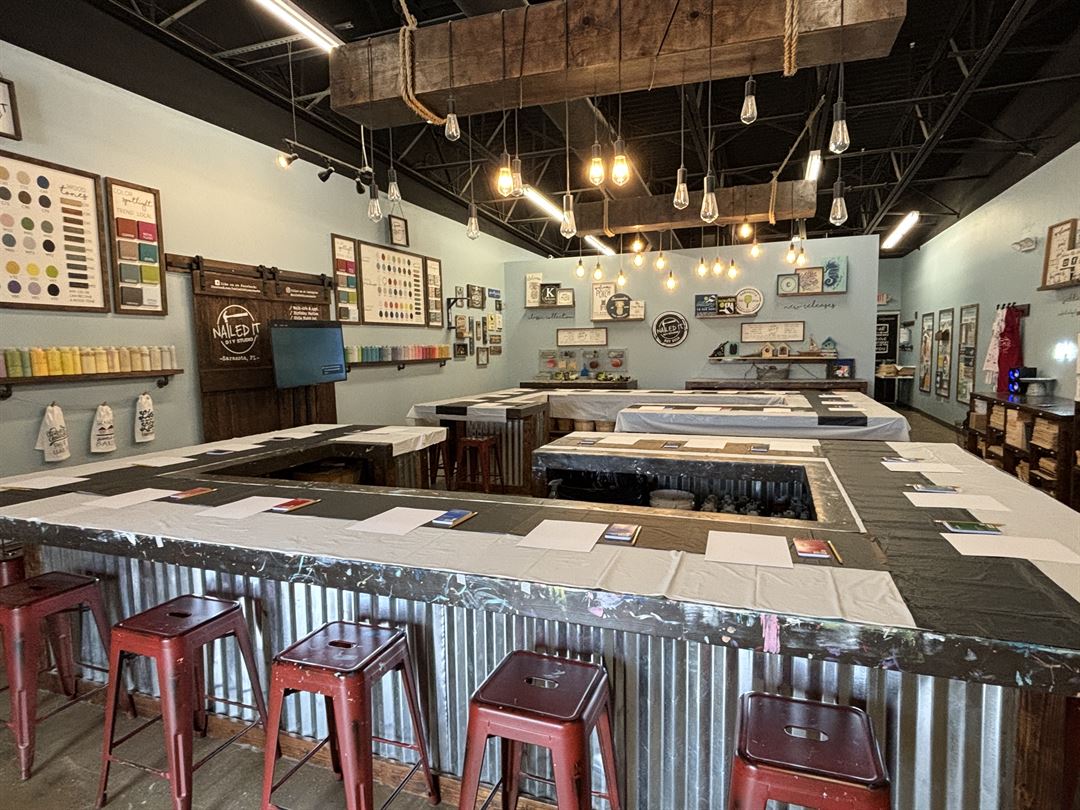 Nailed It DIY Studio is a fun farmhouse style venue located in south Sarasota, near the interstate. It is a popular spot for people who love arts, crafts, and home decor.