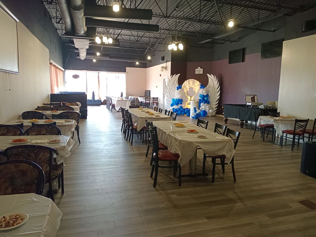 Banquet room with space up to 150 people! Full food and bar service provided, with many options for Buffets or full plate service! Also available for DJs and parties! No charge for room when food and beverage provided by Davids.
