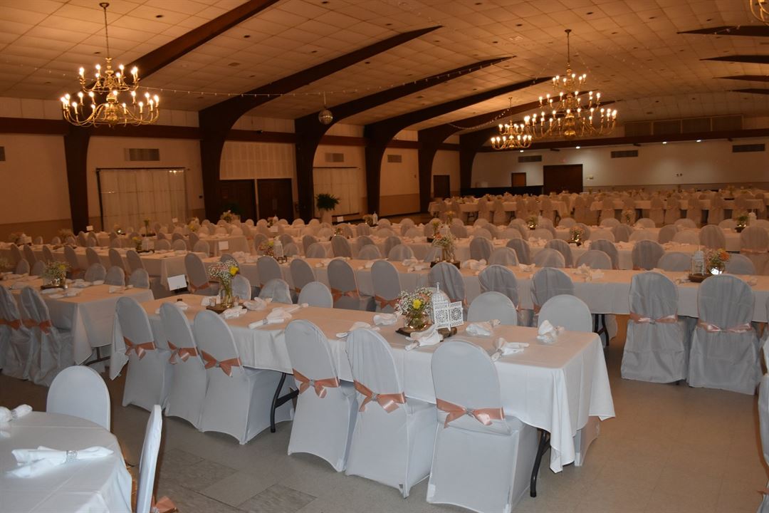 Room rental may begin that morning to decorate with plenty of time to host your event and allow enough time to take down the decorations to be out of the building by midnight. We offer 5-foot rounds and 6-foot rectangles with banquet chairs.