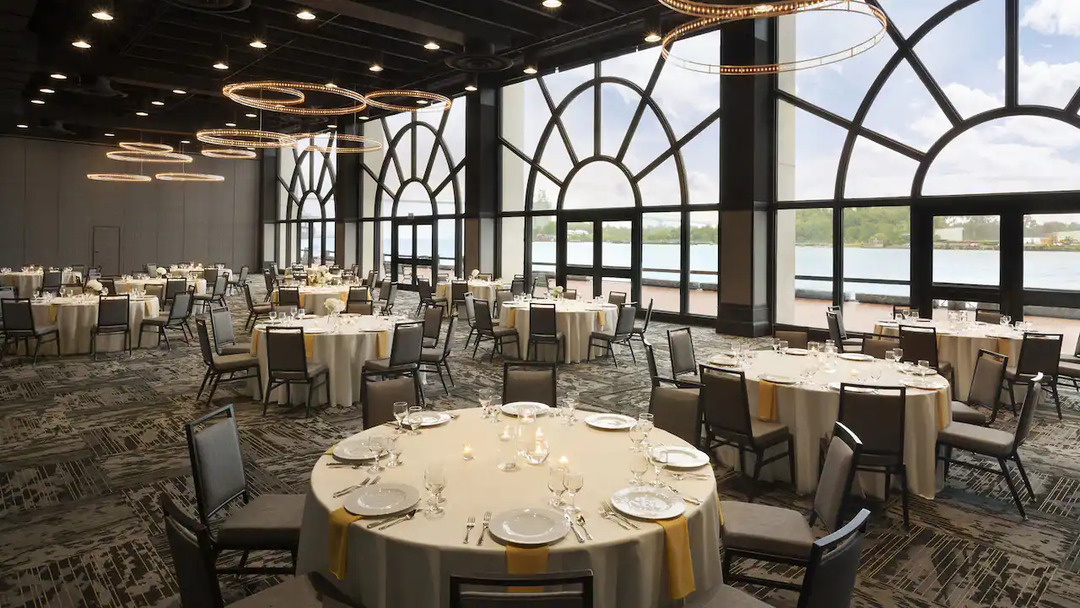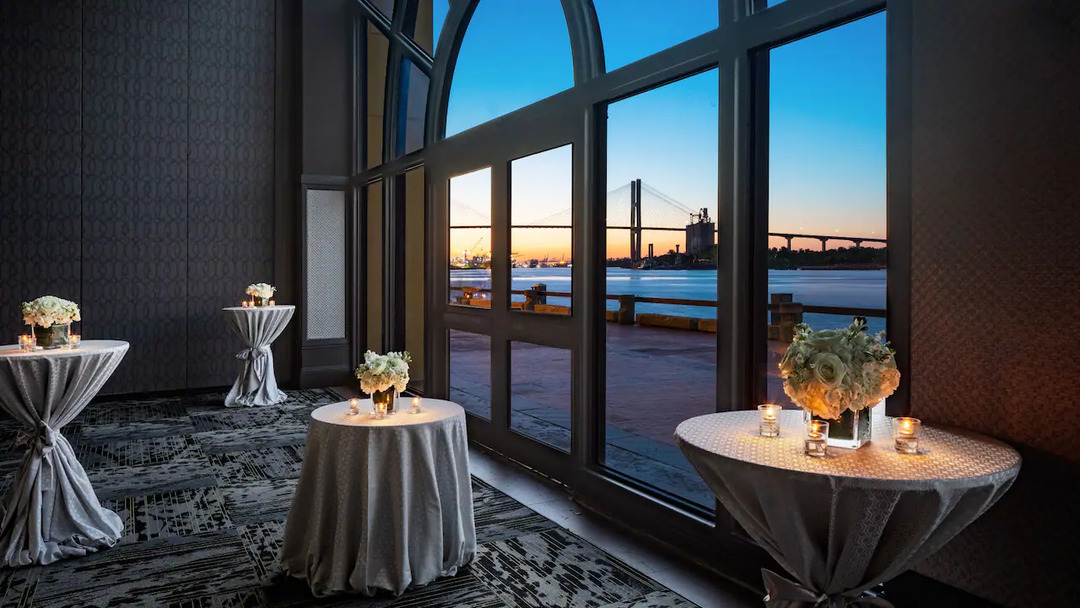 The Hyatt Regency Savannah is a perfect location for your next corporate event, conference center, wedding reception and more! Located in the historic district in Savannah GA, this location has waterfront views and is right on the river. The several event spaces and outdoor venue can accommodate a number of different size parties and gatherings and the rooms can be purposed to your needs.