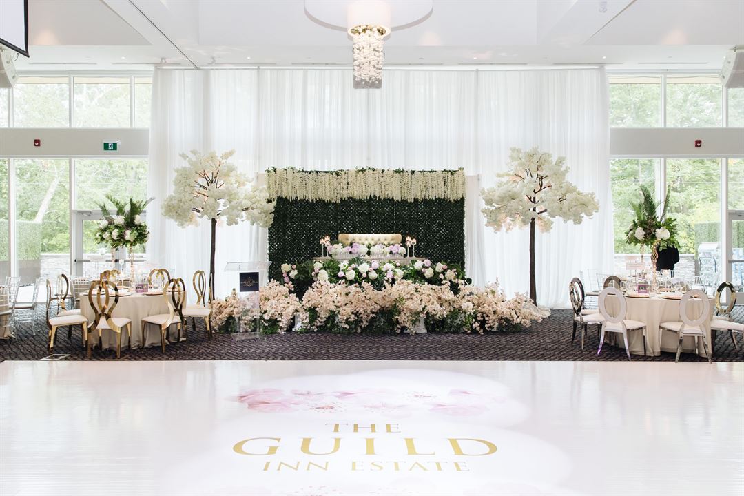 The Guild Inn Estate prides itself on providing a truly unique experience for weddings. Surrounded by plush gardens and picturesque views showcased through a floor-to-ceiling glass wall, the backdrop will create a romantic setting like no other. Wedding packages can be customized to suit your taste and needs.