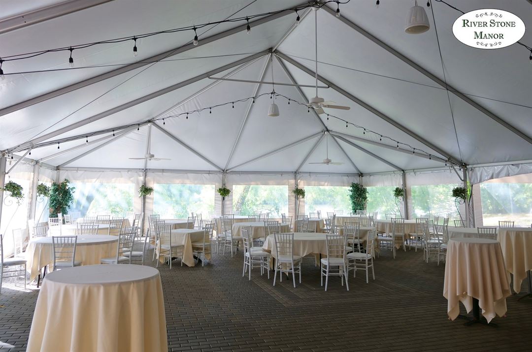 The Terrace Tent is the perfect place to host smaller, more intimate wedding, showers and more holding up to 100 guests. Located closer to the river front with beautiful surrounding landscape, and gas fire pit this location gives you a more outdoorsy feel. The Terrace also makes the perfect cocktail hour to kick start your reception, and can hold upwards of 220 guests when free flowing for cocktail hour with both indoor and outdoor seating.