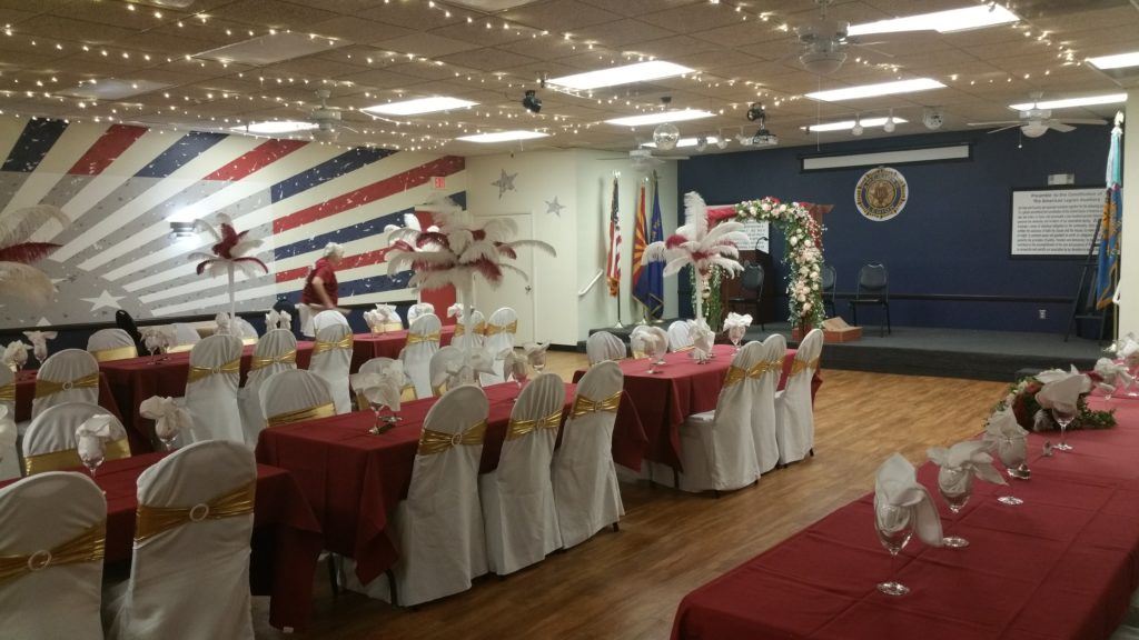 Post 44 offers a rental hall/ballroom for all your special events. When set up for a dinner event, we can seat approximately 125 depending on the table configuration. We offer either buffet or sit down meals with full beverage service.