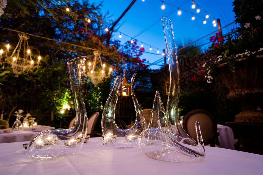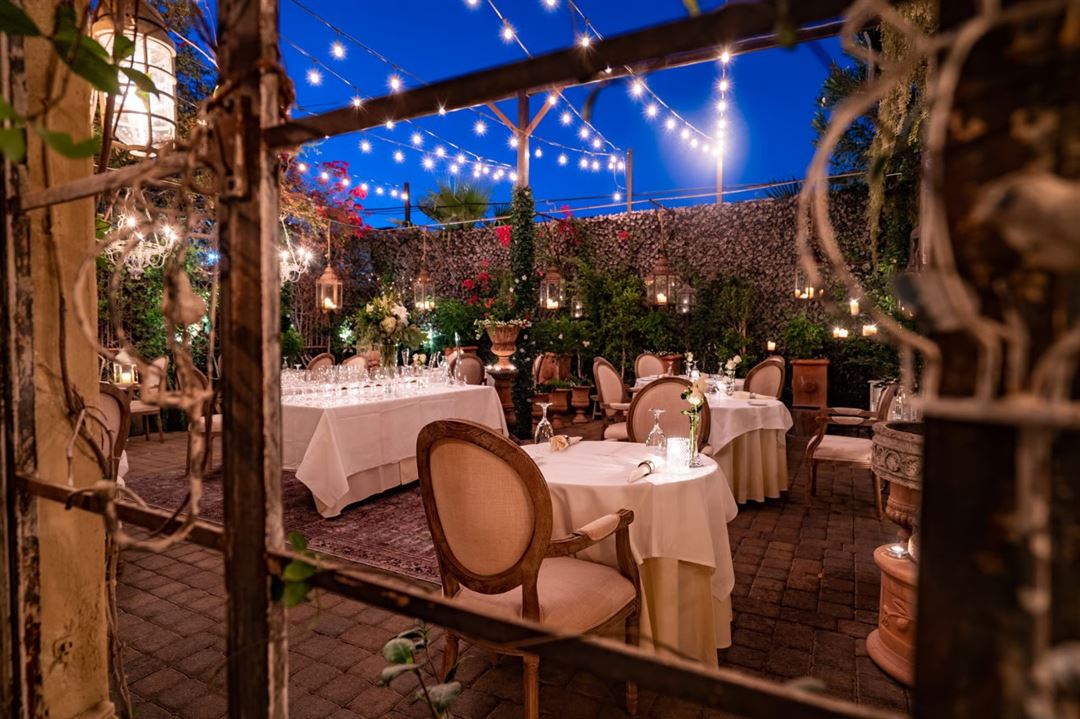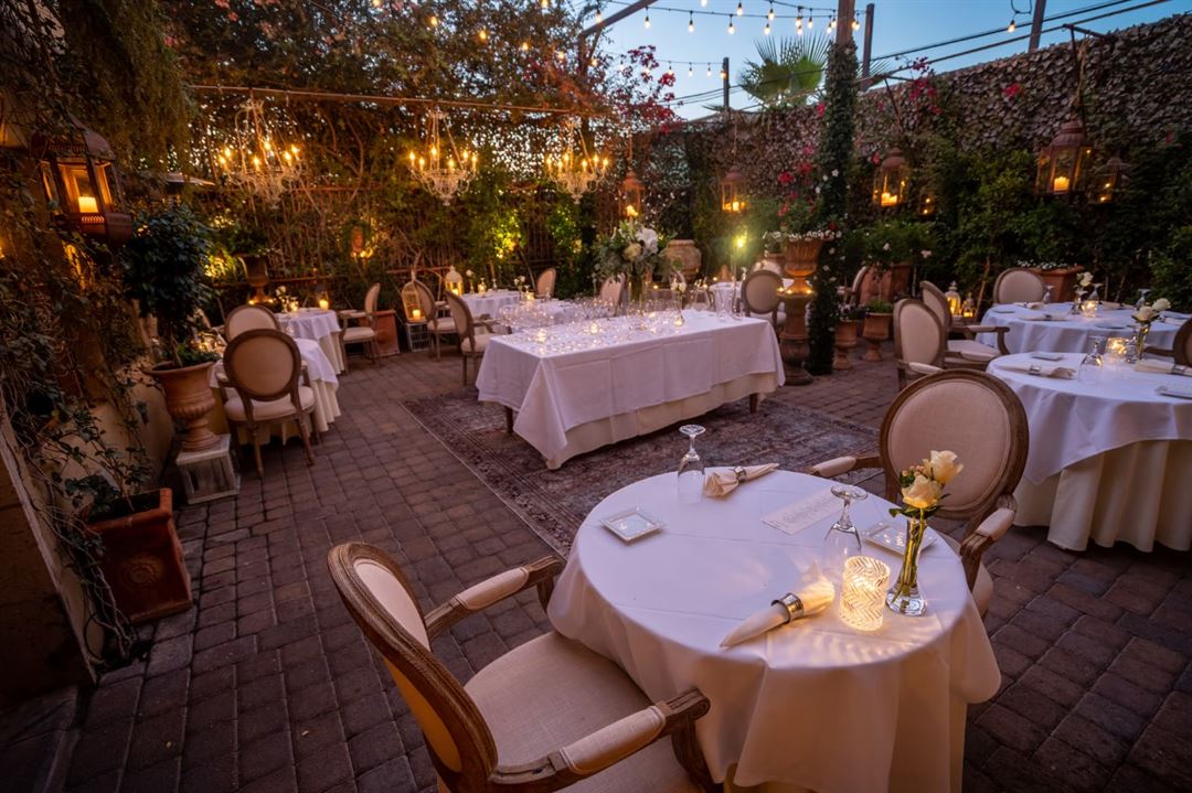 The Lounge is complete with bar and restroom. It can receive up to 50 guests at a time. The garden courtyard can host up to 40 dining guests and 75 standing. There is an indoor Chef's table which seats 8.