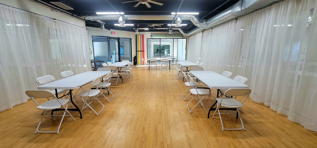 Our event venue is perfect for those looking for a space to host their birthday, fitness class, team meeting or a training course. All studio reservations include tables and chairs and the use of 12 photographer backgrounds, along with a 65" smart tv for presentations. Our facility is stickily by reservation only.