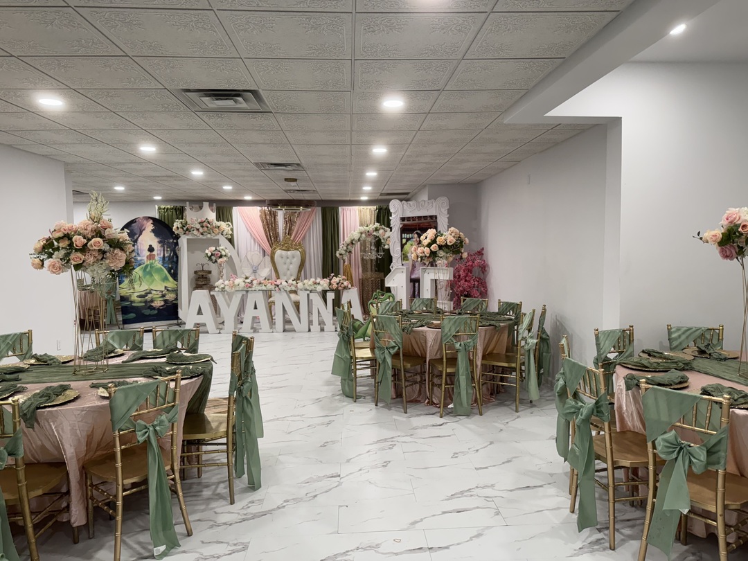 Our venue combines modern elegance with versatile design to suit any event. Thoughtfully divided into two spaces—the Front Gallery and the Back Haven—this venue offers flexibility for everything from intimate gatherings to grand celebrations. The Front Gallery, with its 630 square feet, features natural light streaming through a floor-to-ceiling window overlooking Wyoming Avenue, making it ideal for cocktail receptions, networking events, or art displays.