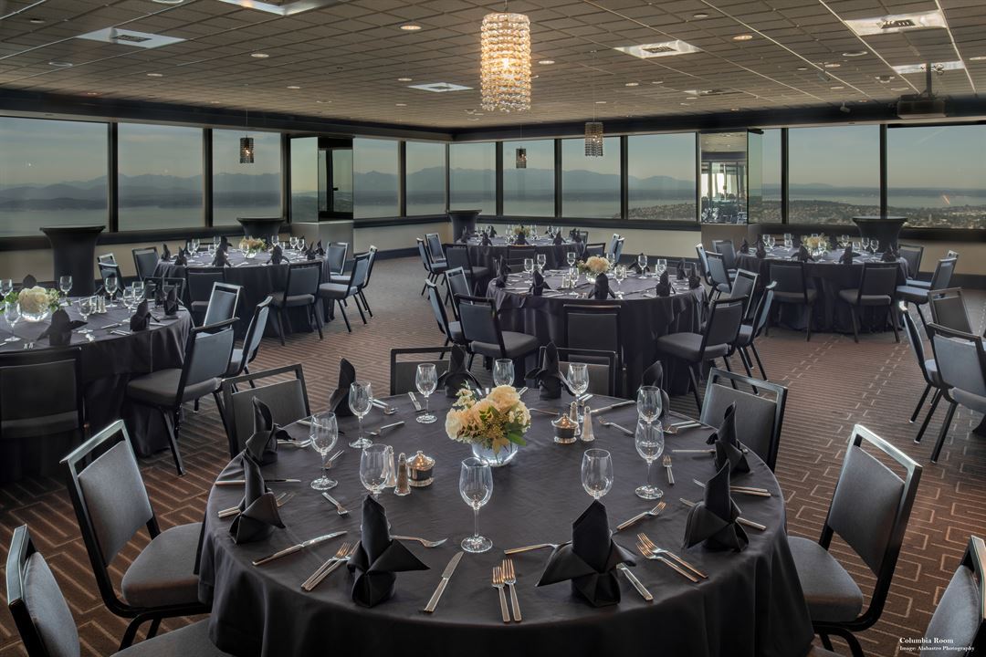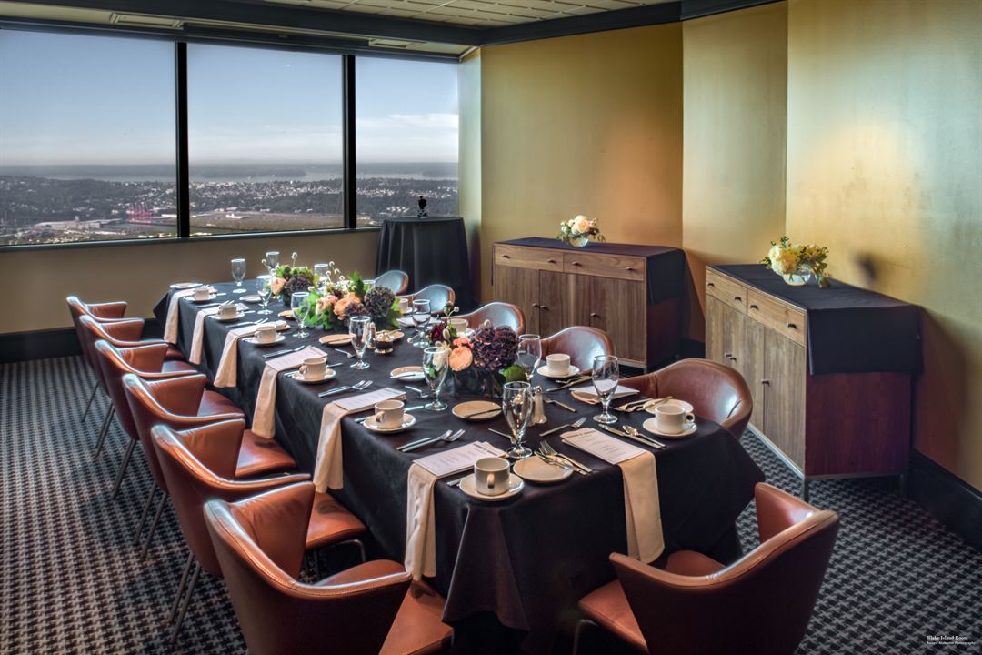 Located in downtown Seattle, Columbia Tower Club is a beautiful location for any wedding, reception, or other special event. The Club's sophisticated and modern banquet rooms and meeting facilities feature spectacular panoramic views of Seattle. Beautiful warm woodwork, high-end finishes and artwork from local artisans create an elegant ambiance, perfect for the most special of occasions.