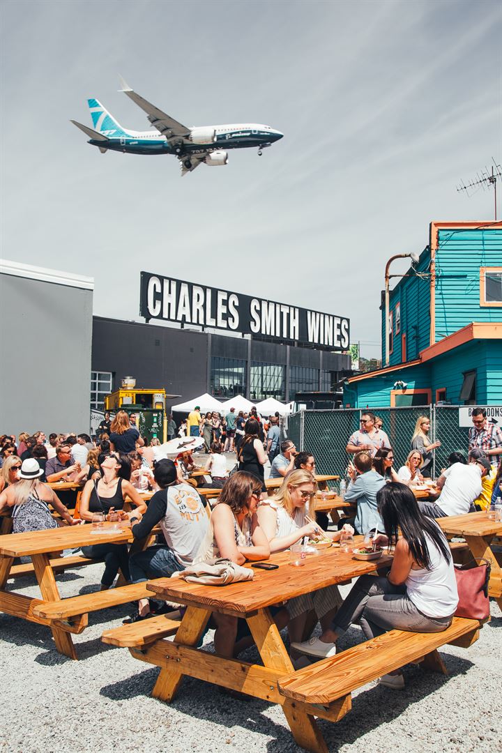 Located in Seattle’s historic Georgetown neighborhood, House of Smith Jet City is a one-of-a-kind urban winery set in a transformed Dr. Pepper bottling plant, brought to life by winemaker Charles Smith and architect Tom Kundig of Olson Kundig. Here, guests can sip award-winning wines, soak in the rock-and-roll atmosphere, and take in stunning views of Boeing Field’s runways and the iconic Mount Rainier.