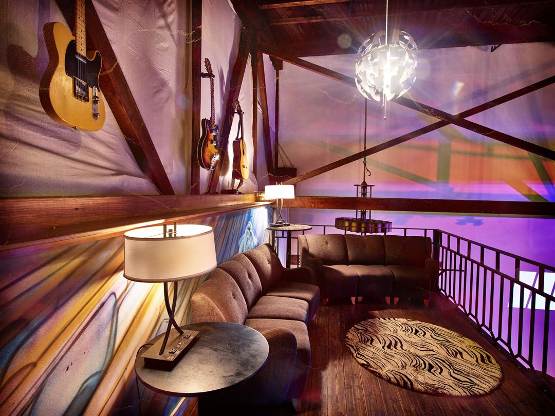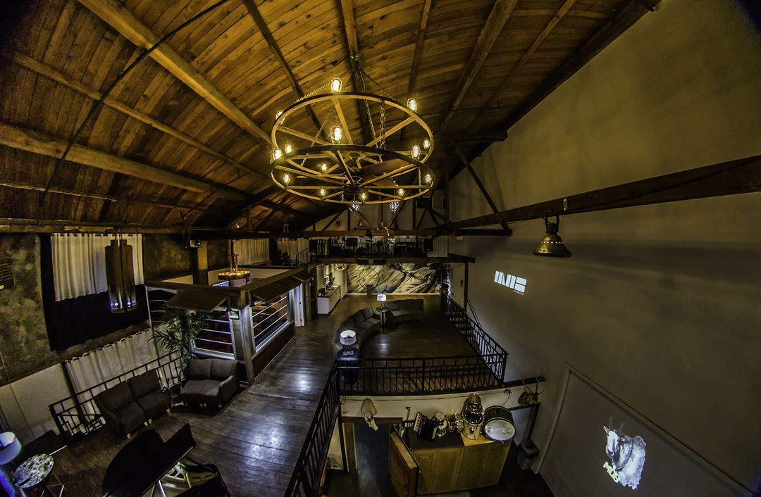 There is three stories of usable space including a recording studio on the bottom floor and a very open layout on the upper two levels.
