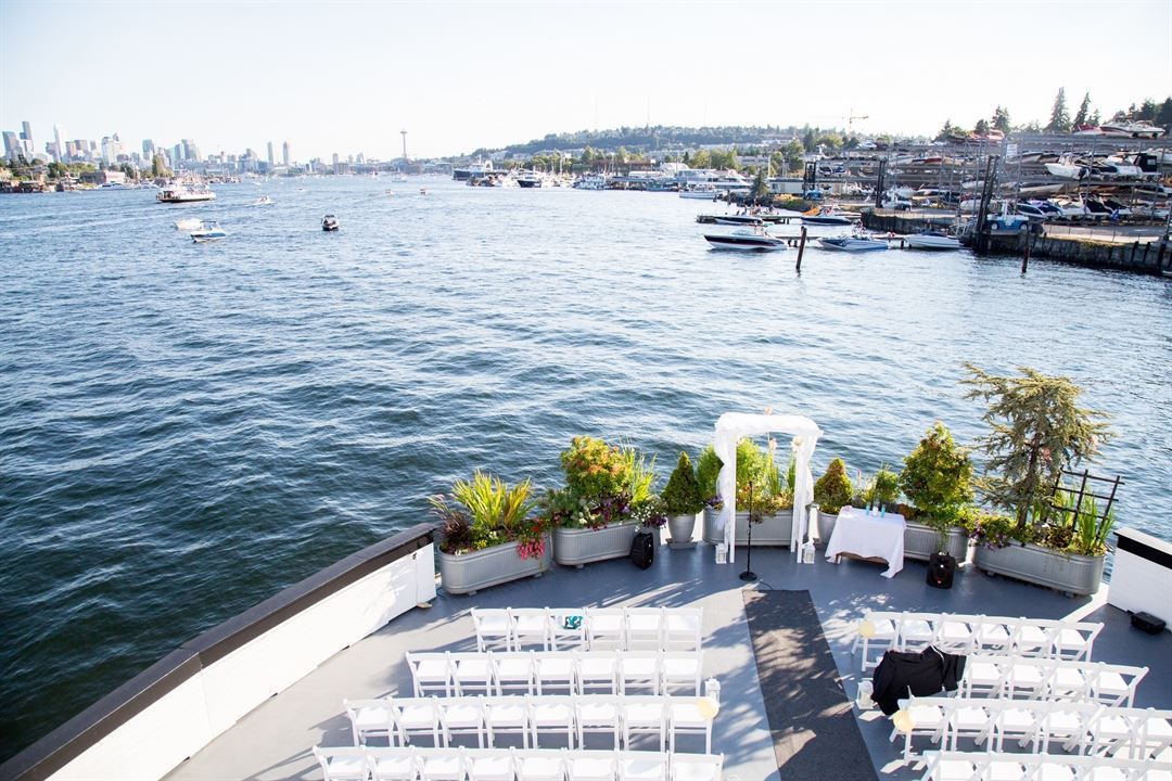 The MV Skansonia, Seattle’s premier waterfront event facility, specializing in outdoor or indoor Weddings and Receptions, Corporate and Holiday Parties, Retreats, Bar and Bat Mitzvahs. She sits on the North shore of Lake Union with an unsurpassed view of Seattle and the Space Needle. The Skansonia is a smoke free boat and event facility. Smoking is permitted in the parking lot prior to boarding Skansonia's dock. Built in 1929, this now retired WA Ferry has a new life as a private event facility. With modern updates and vintage flair, this truly historic piece of Pacific Northwest history is perfect for any season. Our boat can accommodate events of all size with a maximum reception style guest capacity of 300.