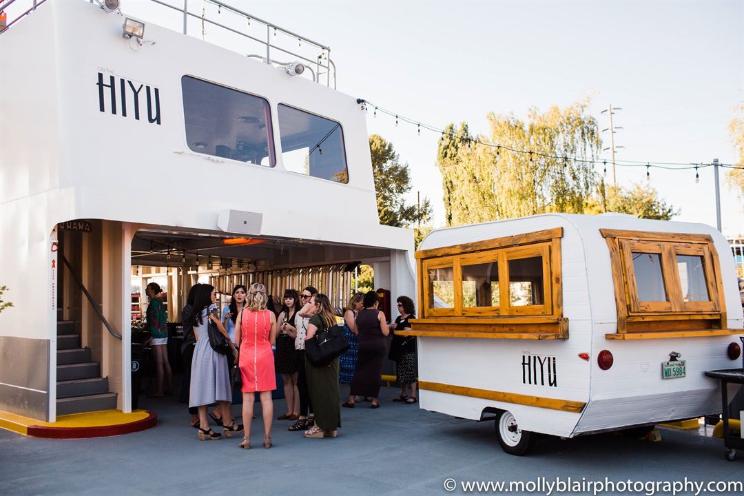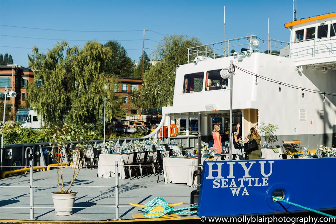 On The Hiyu is a place where dreams set sail, reality soars in unexpected directions and celebrations come to life! On The Hiyu is a one-of-a-kind, floating event space with a spacious outdoor deck, two well-appointed indoor passenger bar lounges offering signature cocktails, a custom kitchen serving culinary delights, programmable lighting and a full sound system throughout the vessel. Create the event or wedding of your dreams while taking in spectacular views of Seattle and the Northwest as we sail on the waters of Lake Union & Lake Washington.
