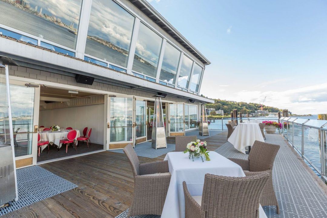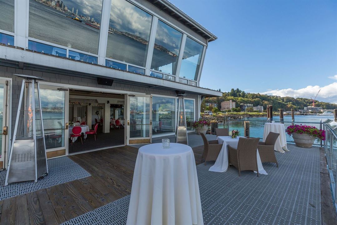We have three private dining rooms: The Alki Room, The Duwamish Room and the intimate Admiral Stateroom. All three rooms offer a private patio or deck area on Elliott Bay with spectacular views of the Seattle skyline. Combine all three rooms into The Grand Skyline Ballroom to accommodate parties up to 300 guests reception style or 240 seated.