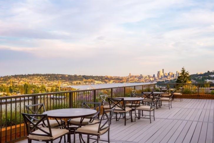 And when it’s time to unwind, take in the beauty of Seattle from our rooftop oasis. With sweeping views and a laid-back atmosphere, it’s the perfect spot to enjoy an evening drink or simply soak in the skyline.