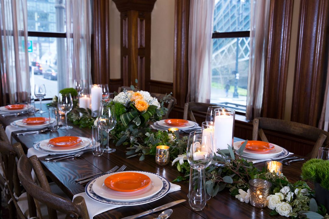 Whether you are planning a small meeting, an intimate dinner, or a grand cocktail party, we look forward to accommodating you at our downtown Seattle venue, conveniently located on the corner of 5th Avenue and Spring Street, adjacent to Kimpton Hotel Vintage Seattle (we can even offer your guests limited valet parking through the hotel). Our private dining room, Solaio, features 660 square feet of flexible event space ideal for wedding receptions, corporate breakfasts, board meetings, cocktail parties and more. Chef Pisano has specially designed menus for your function, or you can customize your own.