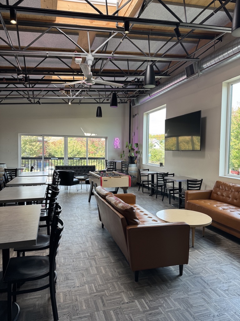 We have covered and heated outdoor seating on our patio in front of our taproom. Kids and well behaved dogs on leashes are welcome on our patio and downstairs in our taproom. Our loft is 21+, no animals. All of our tables are first come, first served.