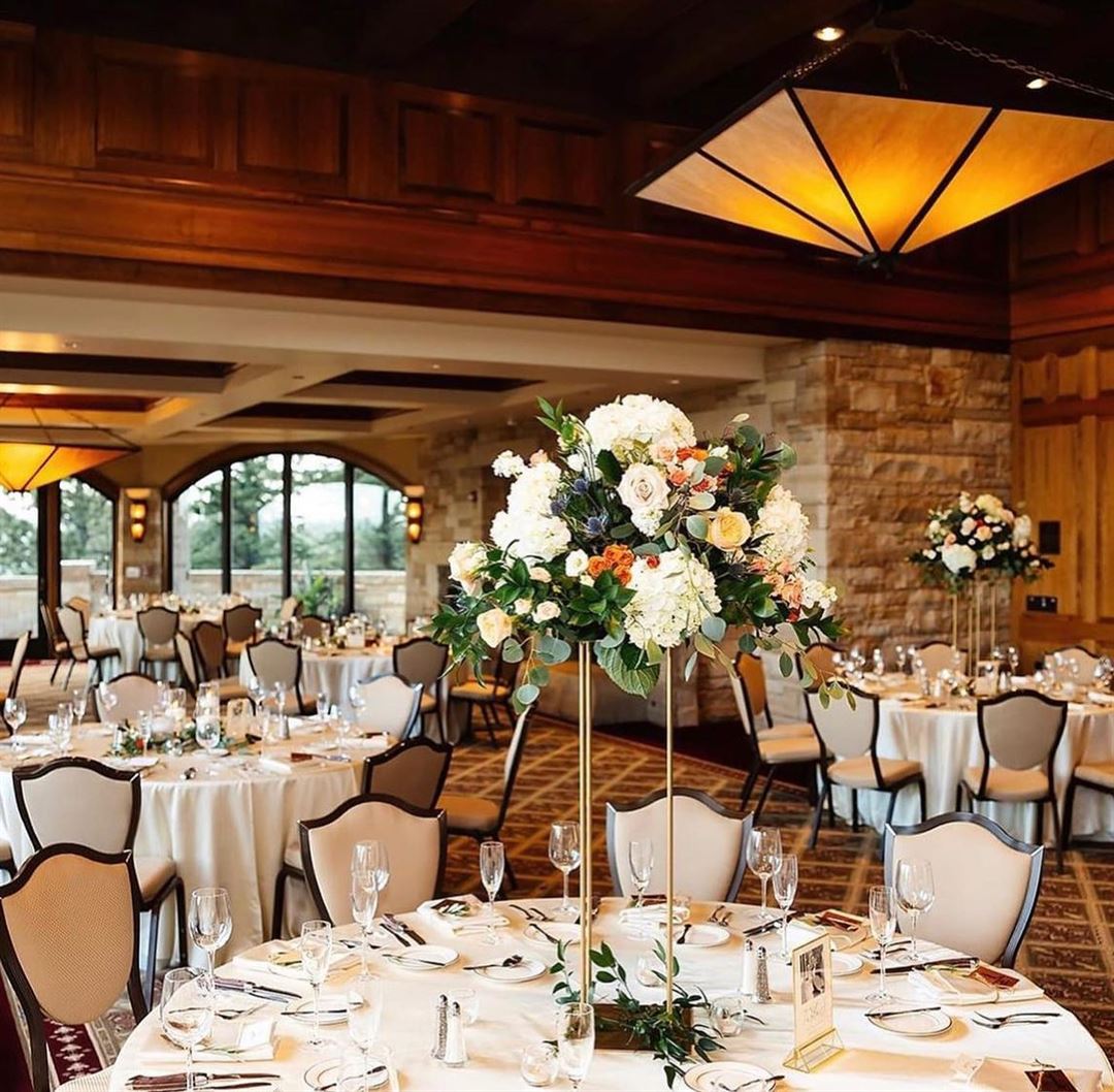 Surrounded by mountain views, this beautiful venue has multiple fireplaces, custom wood details and intricate stonework creating a rustic Colorado feel.