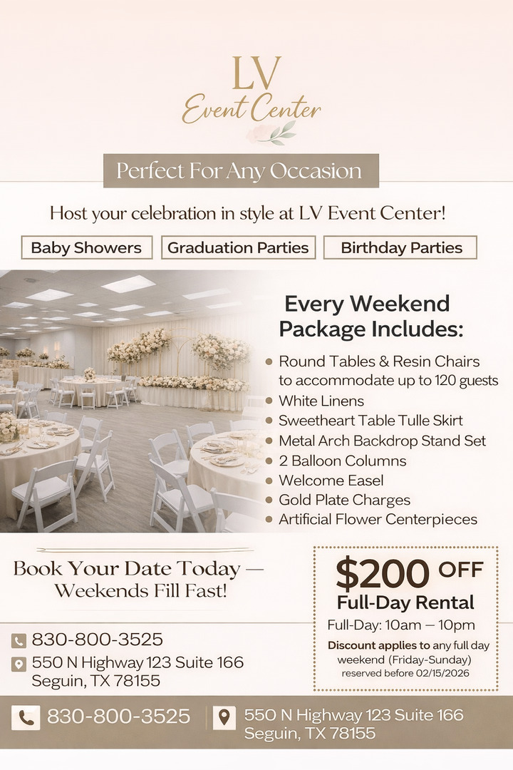 Your Premier Event Center for Baby Showers, Bridal Showers, Birthday Parties, Graduation Parties, Intimate Weddings, Family Celebrations, Company Events and more.