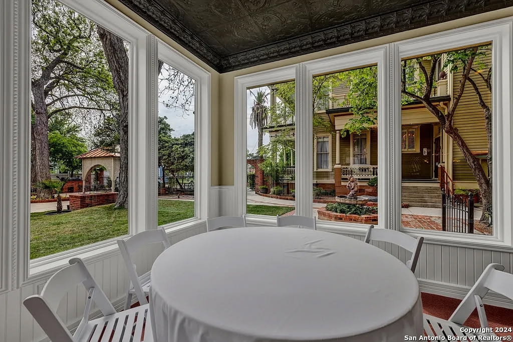 This historic estate features a grand foyer, 12-foot ceilings, four working fireplaces, custom molding and millwork, expansive porches, a full basement, and a fully landscaped courtyard.