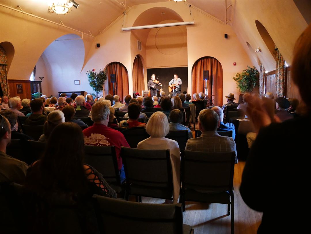 “Gathering Hall” seating area and stage, formerly the church sanctuary