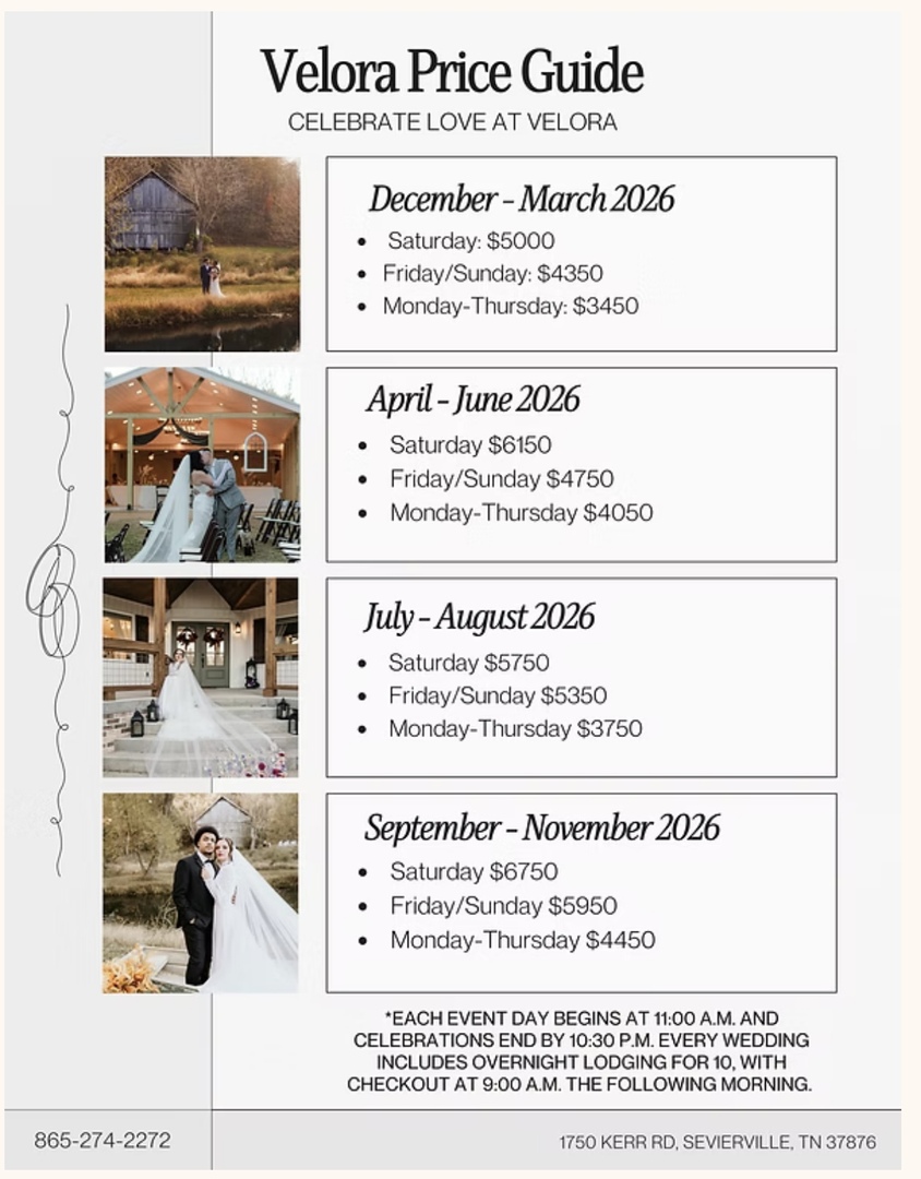 • Modern farmhouse–style boutique venue in Sevierville, TN