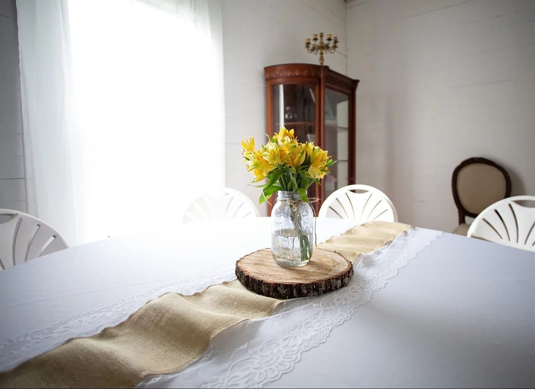 Whether your ceremony is at The Ivey House or you need a place to hold the after party, let our pavilion be the place! String lights, draped fabric, and a gorgeous chandelier turn this outdoor space into a dream. We can design the space to be just right, whether you have a formal dinner or a high energy dance party in mind! Tables can be provided to seat up to 200 guests and optional sidewalls are available to enclose the space and keep your festivities out of the weather.
