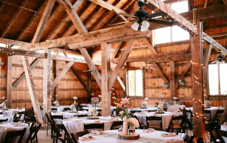 Our newly renovated barn can accommodate parties of up to 200 people. The upper level of the barn features a soaring beam structure with ample natural lighting. Four large HVAC units are cleverly hidden inside rough wood grain bins to preserve the rustic interior of the barn. The upper level can be configured to accommodate myriad arrangements for guest seating, dancing, service lines, and live music.