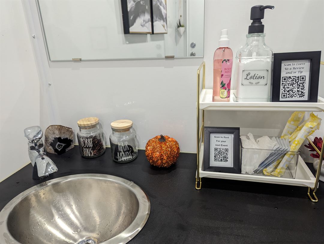 Framily Favorites Rental Facilities provides portable restroom experiences with three modern, beautifully designed, comfortable trailers. Each trailer comes equipped with a full-length mirror and vanity mirror to ensure you are looking your best on the big day. These trailers are almost seven feet tall and offer ample head, leg, and arm room. Baby-changing facilities and diaper-changing spaces are also included.