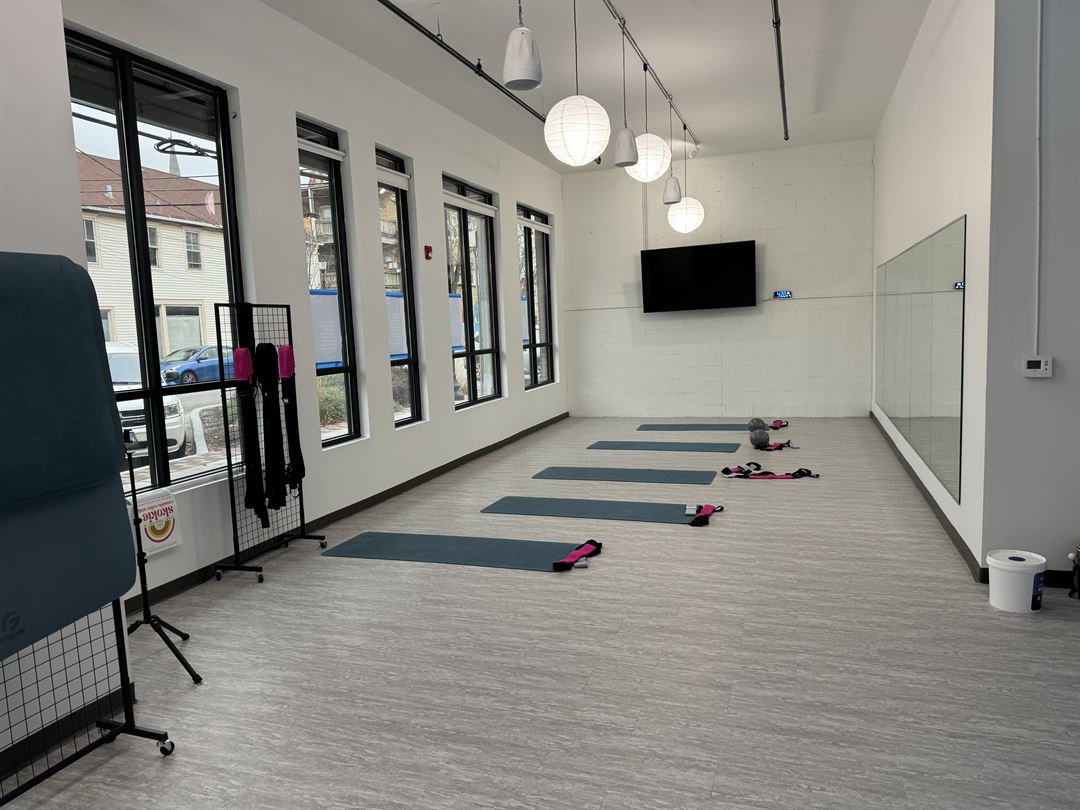 Large space for gatherings or health and wellness events, dancing. 25'x 78' 2 large accessible bathrooms and fitness mats available.