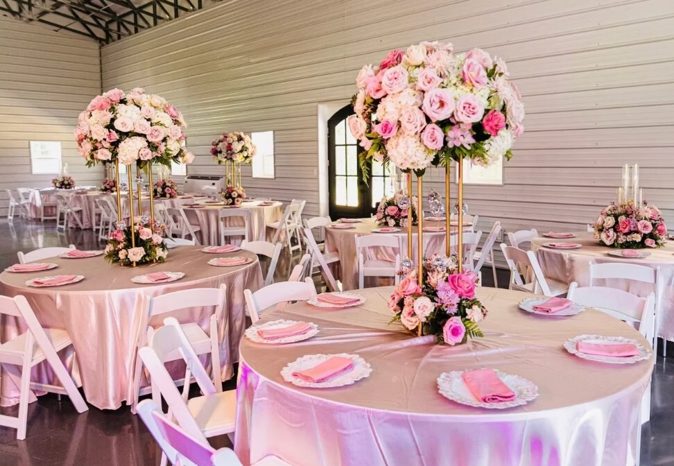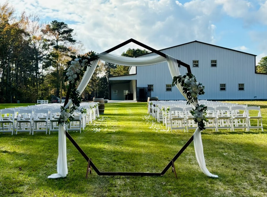 Nestled in the country amidst sprawling fields, our venue is where love blossoms, and memories are made. Conveniently located just off I95 in Johnston County, just outside the Raleigh area, Georgette Thomas Farm is ready to host your special day or event! Our design philosophy is to seamlessly blend the beauty of nature with your unique style, creating a captivating ambiance that mirrors your love. We give you the backdrop to bring in your vendors and have your vision come to life.