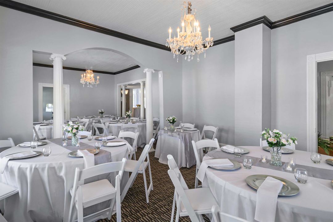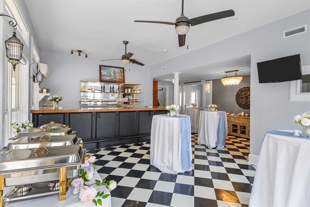 From the moment you step onto the wrap-around porch, you’ll be transported to a bygone era. Inside, discover elegant reception areas, a functional bar, and a private back deck, perfect for outdoor ceremonies or cocktail hours. Our versatile spaces can accommodate up to 70 guests for seated dinners or cocktail receptions.