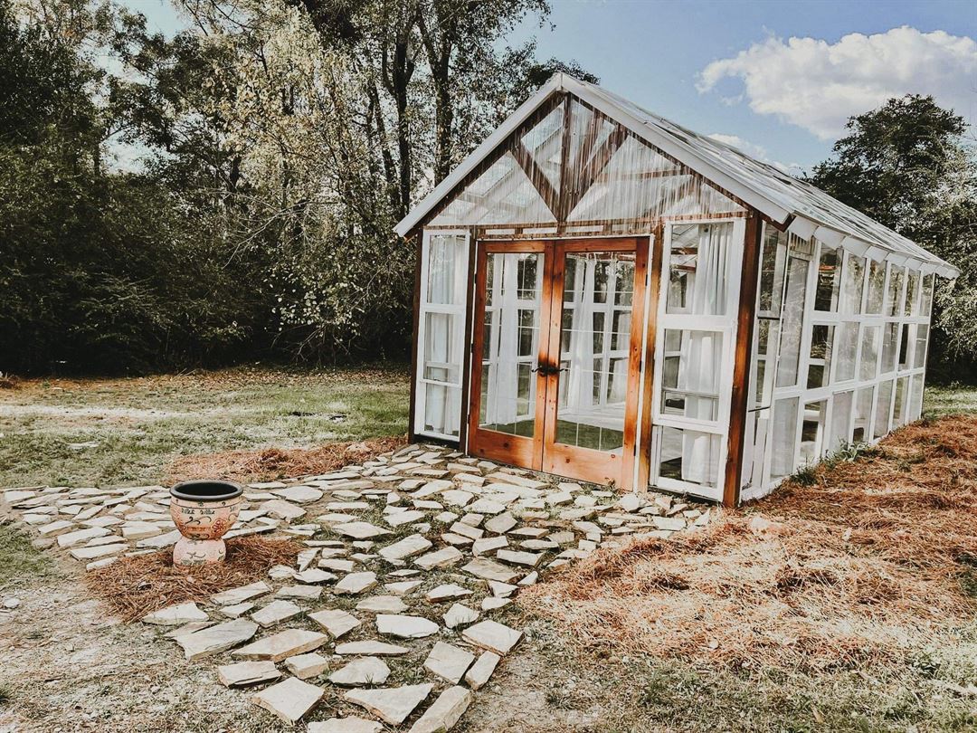 PLUS a 250sqft greenhouse. This is NOT your typical greenhouse. It is set up as a space to intimately share or celebrate with your favorite people, just as much as it is a place for plants to grow. With added benefit of it being photogenic ??. Long 15ft mustard colored pews on each side to sit down, turn on the music, enjoy good conversation, food, and drinks.