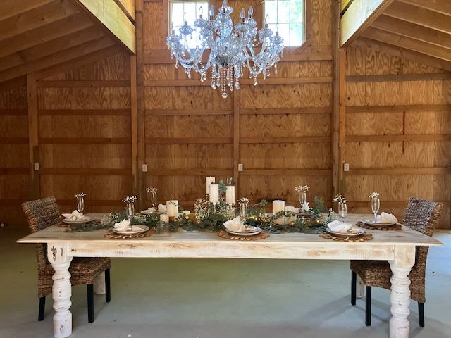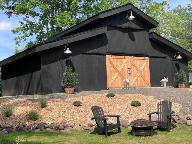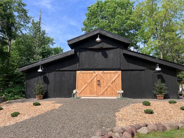 The Black Barn features a wide-open floor plan for ease and creativity in setup. The Black Barn does have electricity for your catering needs. The Black Barn overlooks a pond and the majestic view of the Harvest Moon Forest.