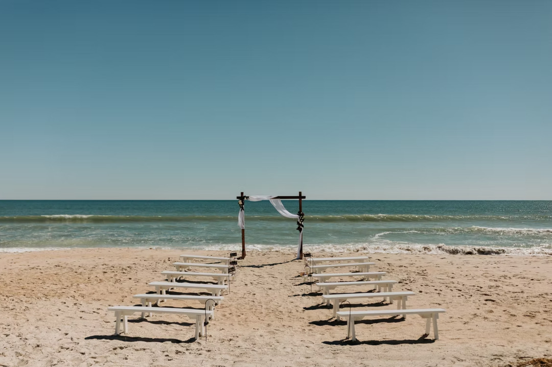 Close your eyes and imagine the hum of the waves rolling, birds chirping as they play in the surf, the gorgeous ocean blue background with a picturesque sun set...All the little details that come together to create your timeless wedding backdrop...