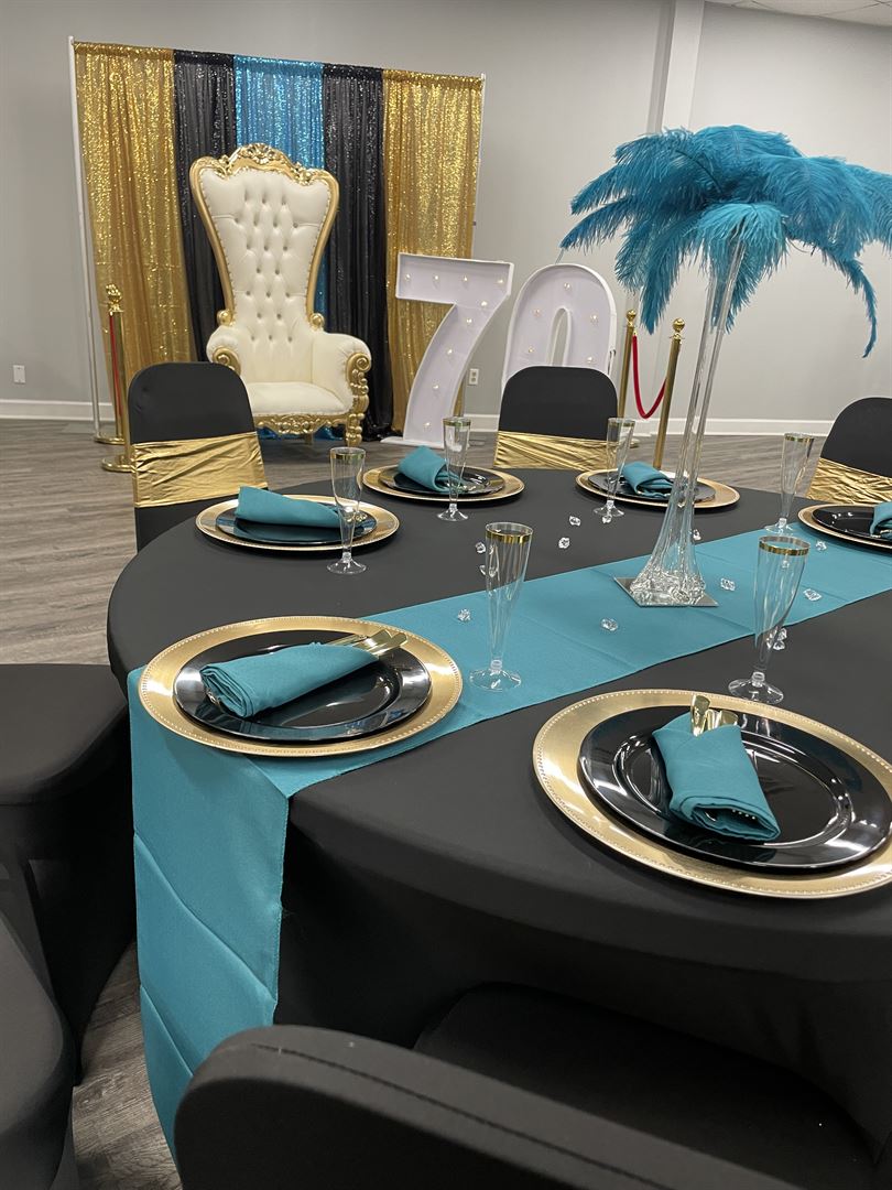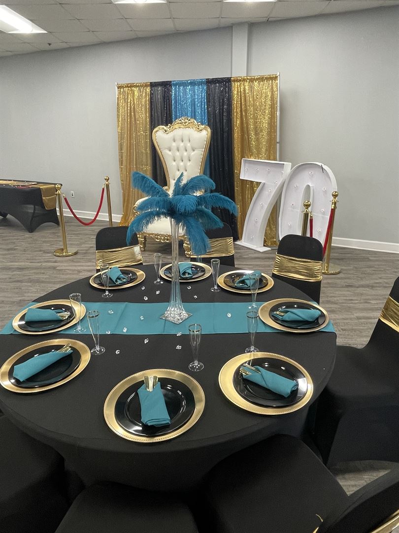 The Tables and Chairs were placed for us and we only had to apply runners and used our own center pieces. The Area for the Bar placement was great, Plenty of space for the catering served food and tables. Large enough for a group of 50 people for a Birthday Celebration and a perfect spot for the DJ to set up. Parking was plentiful and every guest spoke of how well they enjoyed the event and wanted CS Venue information. Thank you Center Stage for the perfect place for a Birthday Celebration.