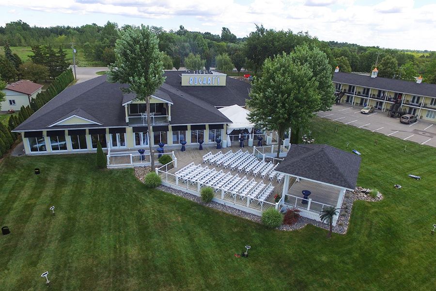 Venues on the water are rare and Bogey's offers a setting that is attractive and so spacious! It is set arrestingly on acres of manicured lawns that offer a magnificent view of the St Clair River. The expansive patios, along with Bogey's iconic gazebo, create the perfect outdoor venue and offer room for 200 guests giving your wedding, business gathering or event room to enjoy. Inside, Bogeys Venue is equally as impressive, offering the same exquisite view.