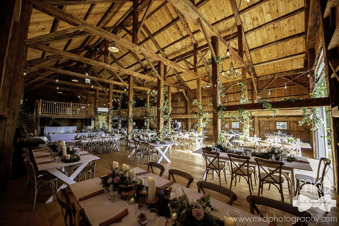 The rustic timber framed Barn can host events up to 240 and Weddings of 200+ guests depending on arrangements.