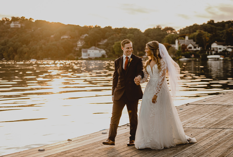 The beach, located just off the boardwalk and steps away from the country club, makes for a perfect lakeside wedding ceremony, offering a picturesque backdrop and irresistible sunsets. If you would prefer, you can also exchange vows on our boardwalk, adorned with rustic lanterns and seasonal flowers. For winter weddings, we offer ceremonies in our spacious Grand Ballroom, with Palladian windows overlooking the magnificent Lake Mohawk. We invite you to come visit Lake Mohawk Country Club, and see for yourself the irresistible romantic charm.