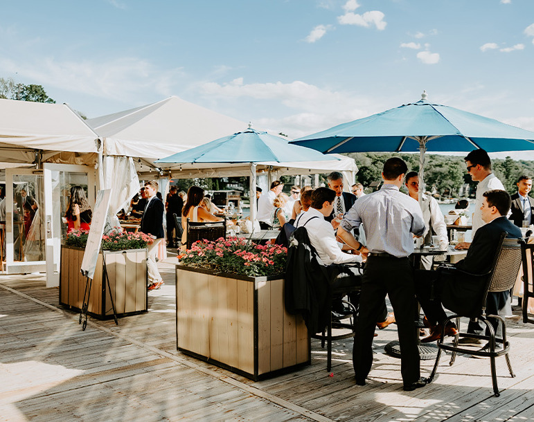 The Lake Mohawk Country Club is a unique setting that has been recognized by the New Jersey and National Register of Historic Places. Also known as “Lake Mohawk Tudor,” it is this unique Swiss chalet–styled architecture that has allowed our venue to become renowned and sought-after for its romantic elegance and charm. The country club, boardwalk, and beach are all centrally located on beautifully landscaped property with breathtaking views of Lake Mohawk. Nestled into the colorful foothills of Northern New Jersey, a distinct warmth and unique atmosphere infuse all three venues, establishing the perfect setting for a wedding ceremony, reception, or rehearsal dinner.