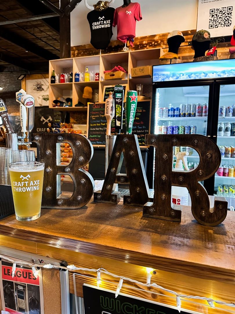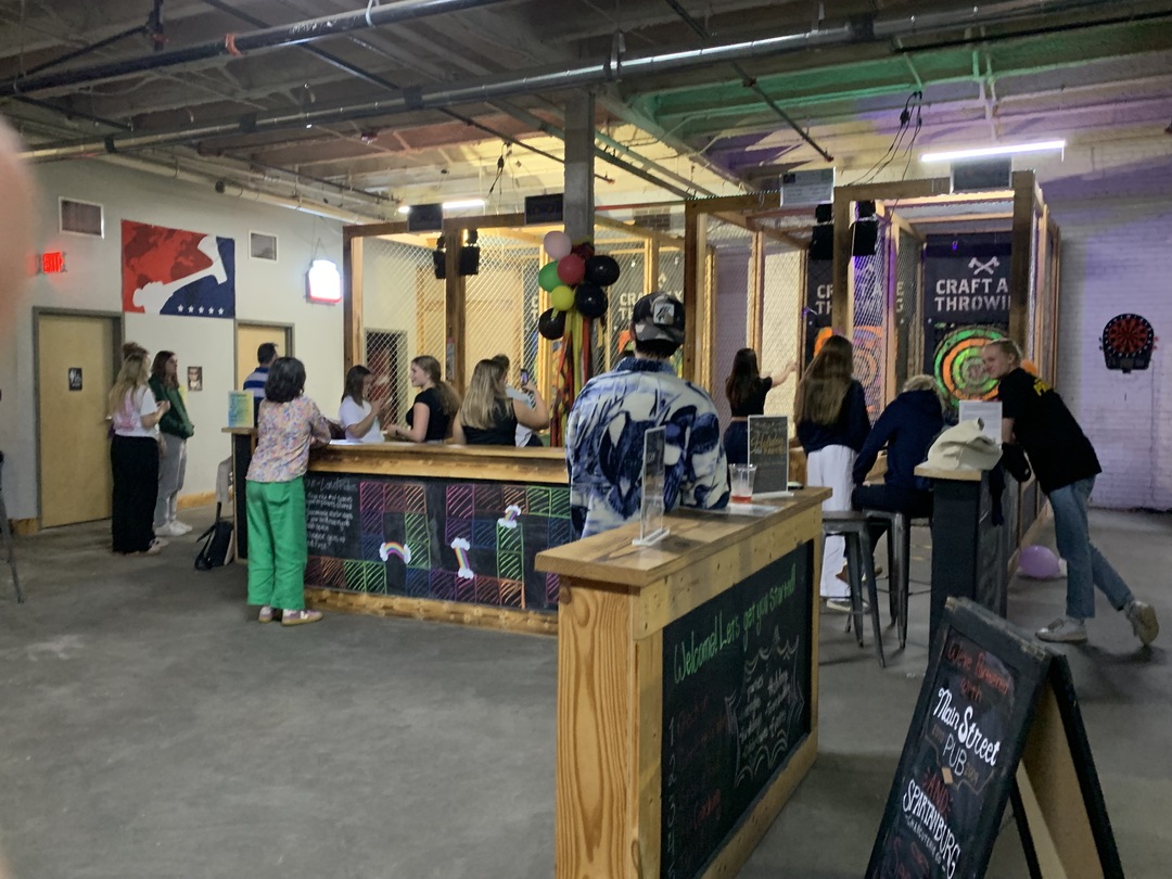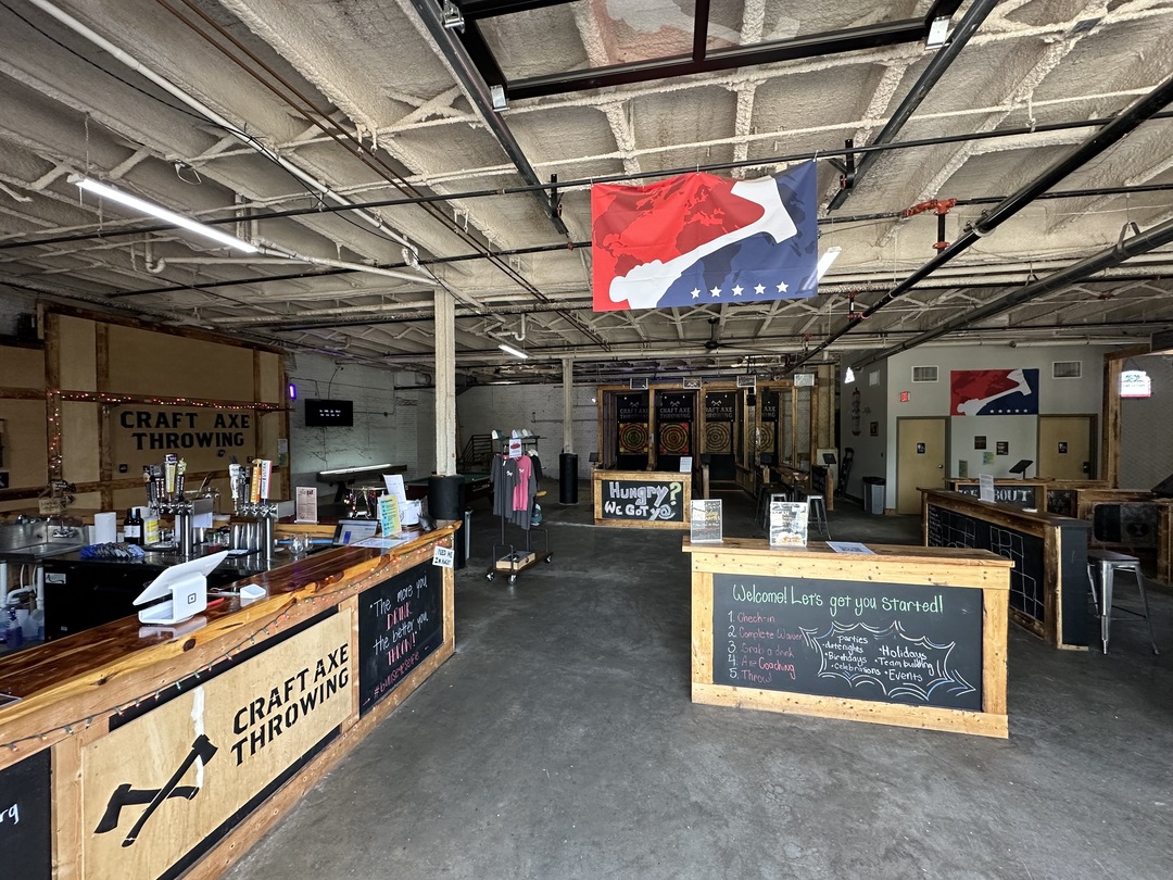 Experience the thrill of axe throwing in Spartanburg, SC at Craft Axe Throwing! We’re the go-to destination for hatchet and tomahawk tossing, with 8 throwing lanes and plenty of space for all the action. But we’re more than just axes — enjoy cold craft brews, multiple TVs, plus games like pool, darts, shuffleboard, cornhole, and more.