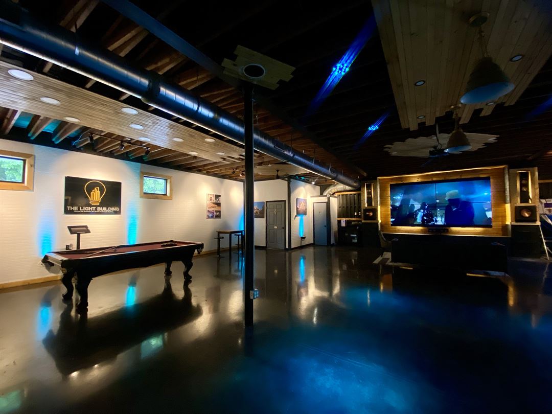 Designed to be an intimate event location, poised and ready to host events from 5 to 75 people. An open space that can easily be transformed to meet your out of office business needs or a special event space. Perfect for holiday parties, fundraisers, wedding and baby showers, surprise birthday parties, and team building events. Every event enjoys full access to all available amenities, including conference table, pool table, a 150” video wall and state of the art audio system. Wait until you experience The Back Porch complete with fire pit, 85" TV and bbq.