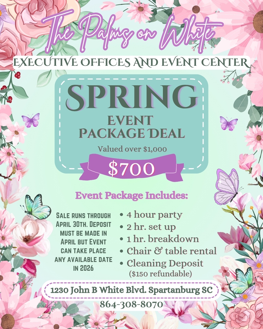 Welcome to The Palms on White, where the atmosphere is vibrant and exciting! We currently lease office spaces, conference rooms and schedule events for all occasions.