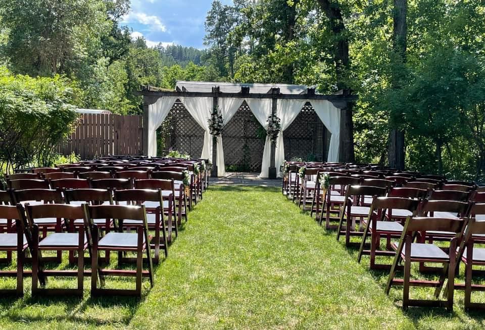 Ruby’s Garden provides an enchanting setting for your wedding ceremony. Nestled behind the historic Booth House on the grounds of the D.C. Booth Historic National Fish Hatchery in Spearfish, SD, the garden features an oval lawn bordered by a rustic flagstone walkway and landscaped flowerbeds. The Booth House balcony provides shade to the back porch that leads out on to the lawn, which stretches towards a vine-covered pergola on the opposite end. Private garden space available May through September.