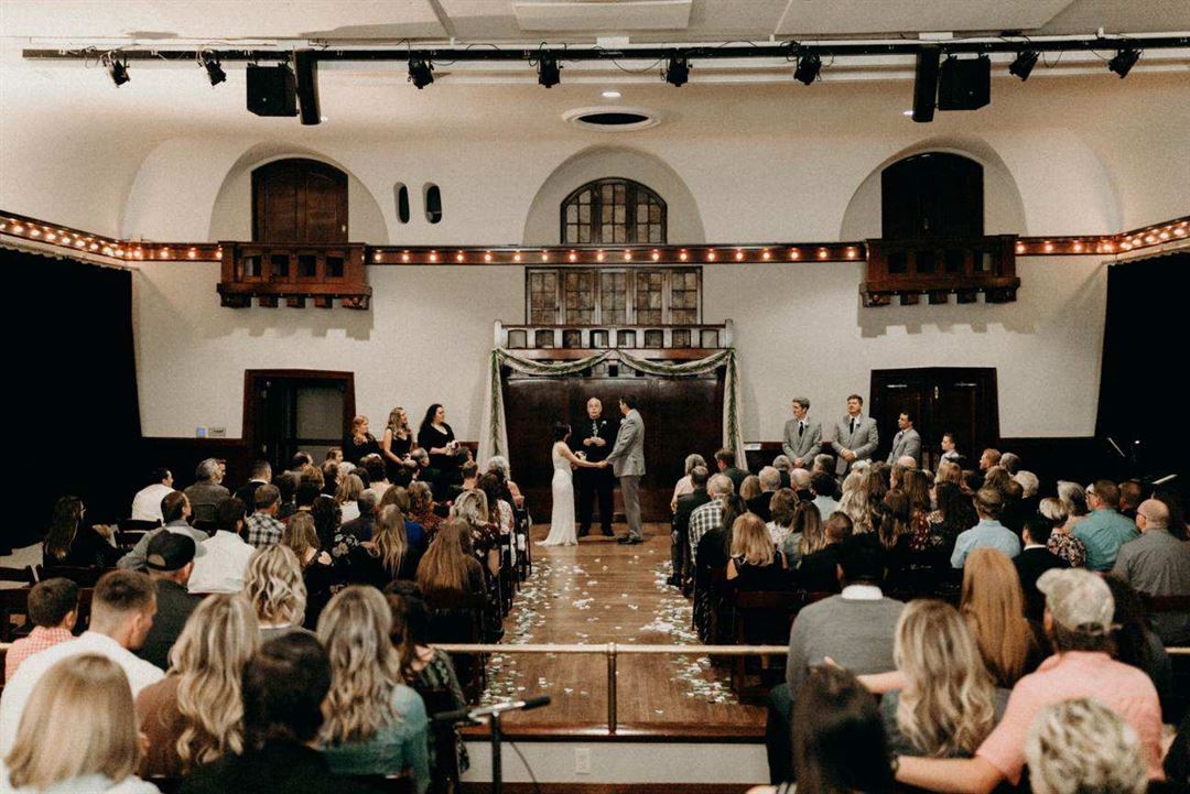 For your next special event, celebrate in style at the historic Montvale Event Center. Our newly renovated event venue is located two doors down from the Montvale Hotel in the historic Odd Fellows Building and consists of a theater, ballroom, and full commissary kitchen. Architectural elements of the 1909 building are blended with more modern decor in the ballroom for a one-of-a-kind downtown ambiance. Stained glass windows and mahogany accents in the second floor theater space create the perfect backdrop for your very special event.