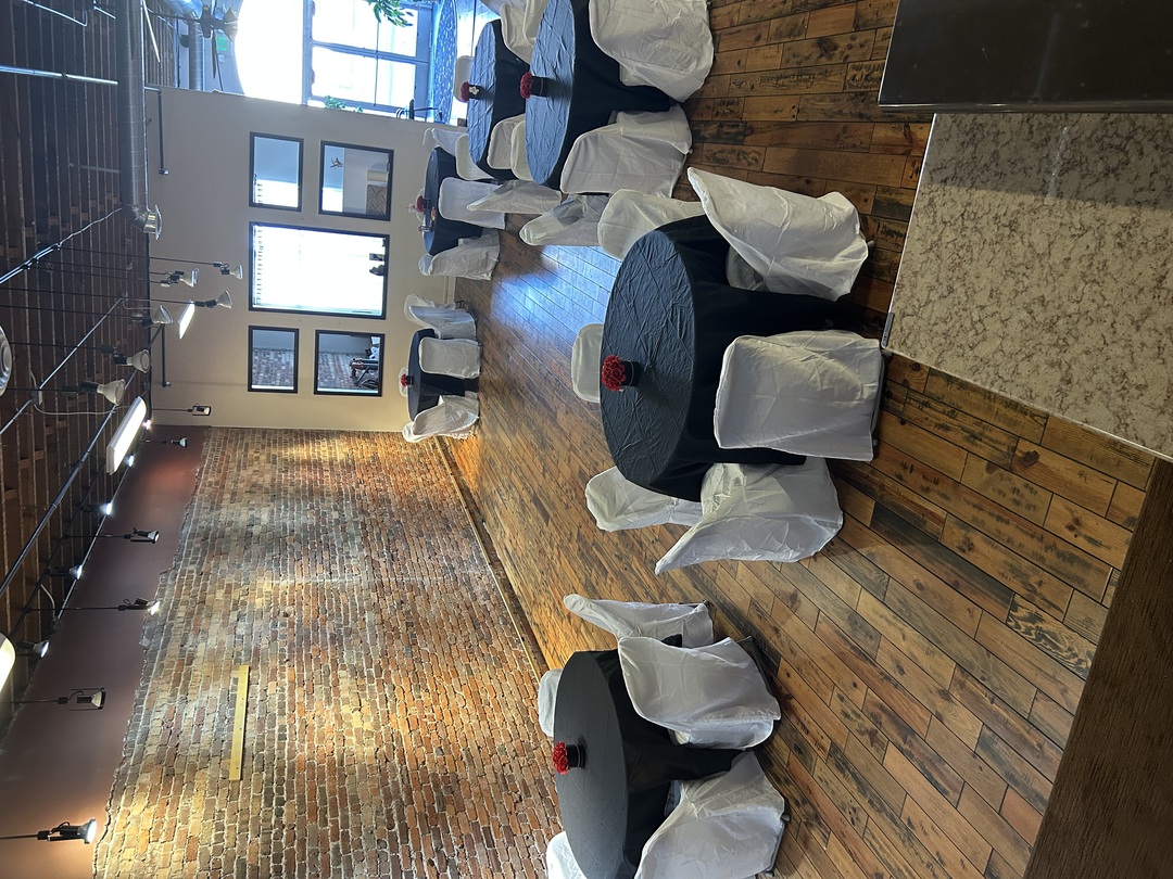 The space is beautiful, love the brick red wall, lighting; and kitchen is nice and in convenient spot! They have 2 seperate bathrooms, they are spacious, clean, restocked, and cozy. the venue was clean, spacious, and well-organized, with plenty of room for guests to mingle, dance, and enjoy themselves.